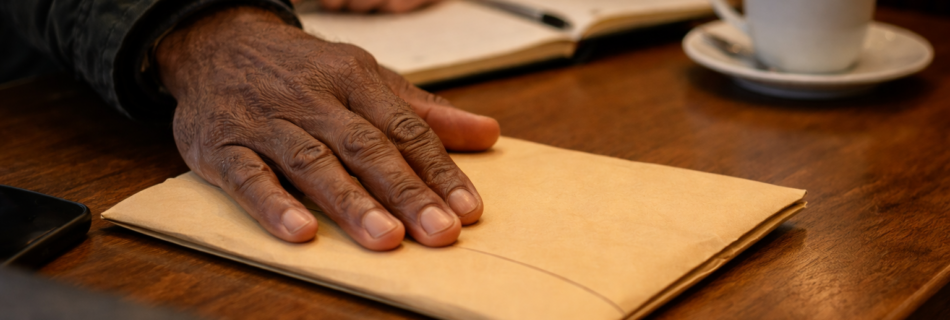 “He set his hand on the envelope like you’d steady something that could tilt a whole room.”