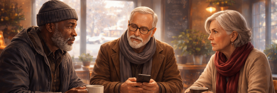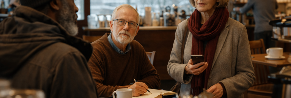 The morning at The Shepherds Cafe had the kind of quiet that wasn’t empty—it was settled. Outside, winter pressed a pale, colorless light against the windows, and the trees across the street stood stripped down to honest lines. Inside, the warmth held steady: a soft jazz track that stayed in the background, a few regulars speaking in low voices, and the scent of coffee and toasted cinnamon that clung to coats like it was trying to be helpful.